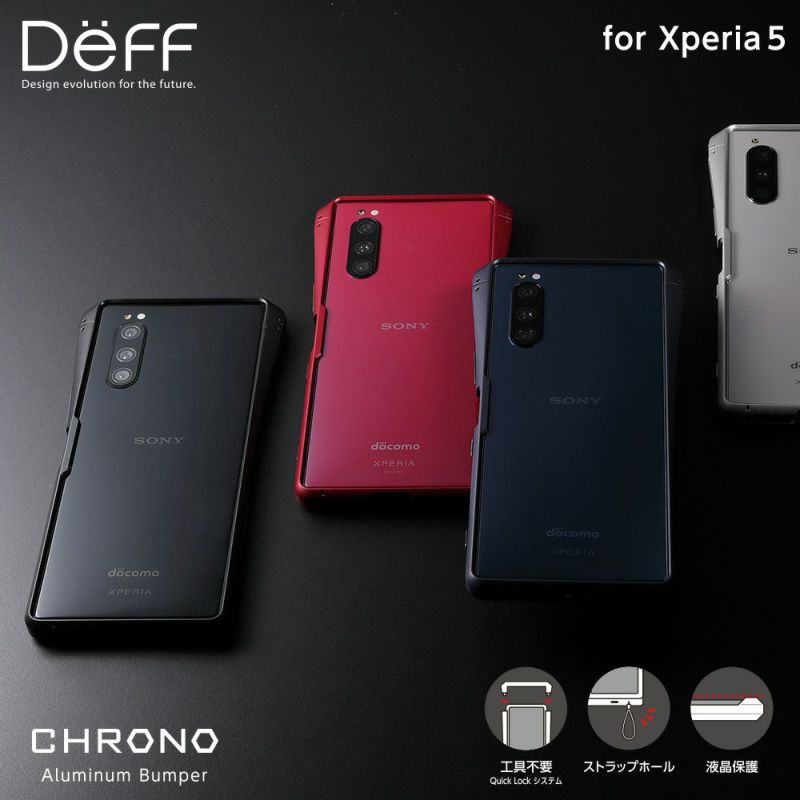 - 「CLEAVE Aluminium Bumper CHRONO for Xperia 5」のデザインは、Deffデザインディレクターを務めている山岸隼人が担当しました。「『21:9』という新しいバランスをしたXperia 5のディスプレイに対して、シンプルでありながらCHRONOシリーズらしいエッジとラウンド形状のバランスの実現をコンセプトにデザインしました。上部にQuickLockを配置して、バンパーが手に当たることによる違和感を抑えました。また、ストラップホールといったディテールにも注力し、下部にまとめることでアルミバンパーの形状をより洗練させることに成功しています」