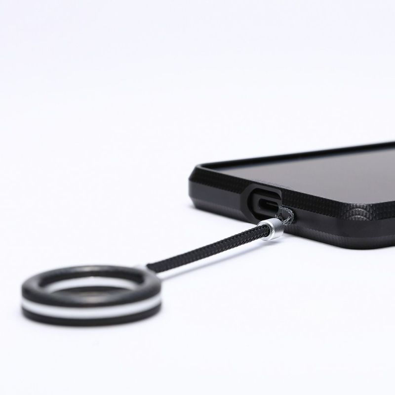 専用のストップホール付。お好きなストラップをご利用いただけます。