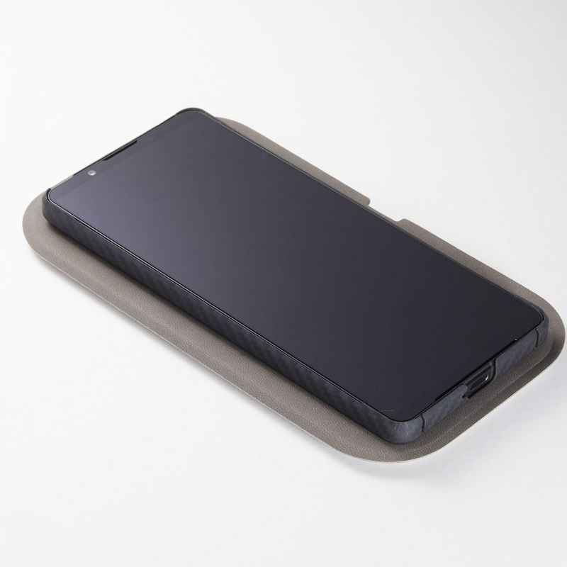 アラミド繊維の特徴を活かしてケースは軽量かつ強靭。さらに、アラミド繊維の織り目や、特殊コーティングにより滑らかで手にしっとり馴染む肌触りも実現。マット仕上げ。特徴的なXperia 1 VIのスタイルを際立たせるシンプルで美しい仕上がりになっています。通話やモバイルSuicaの使用はもちろん、5G通信とNFC、Qiの影響もありません。
