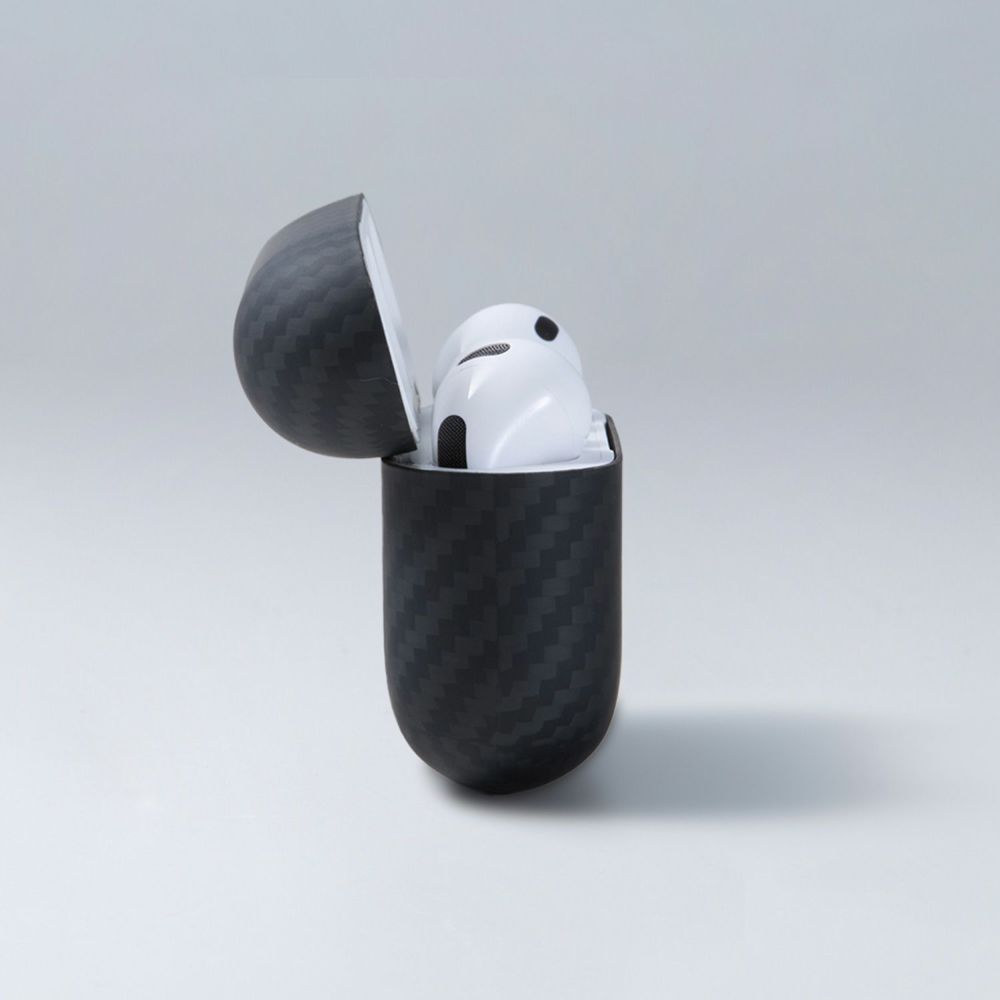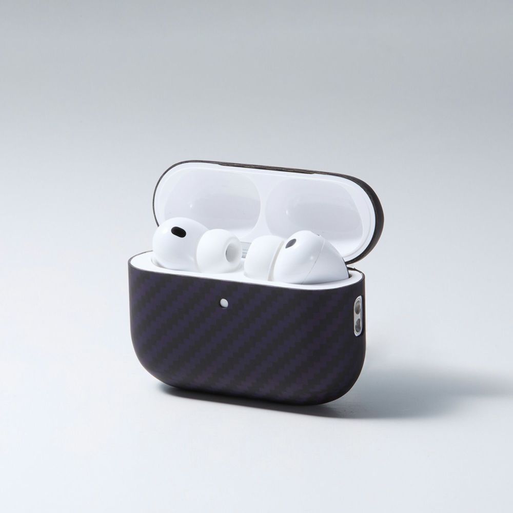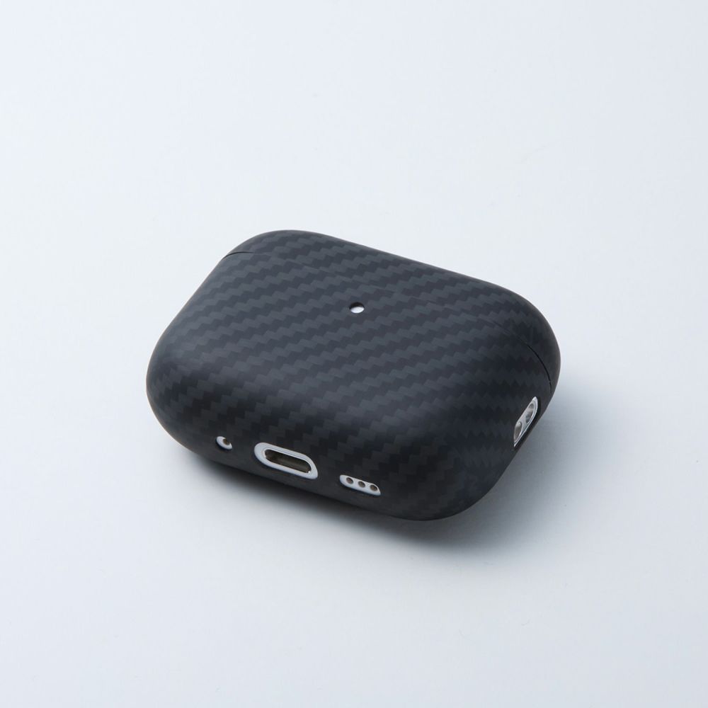 最新モデルのAirPods Pro 3用MagSafe充電ケースを、アラミド繊維の特殊3D成形で作りました。厚さは約0.65mm厚で重量は約7gで、ケースの装着感を殆ど感じさせません。アラミド繊維は同質量の鋼鉄よりも5倍強く、耐衝撃にも大変優れた特殊素材です。素材には世界トップブランドの米国デュポン社製 ケブラー(R)を使用しています。