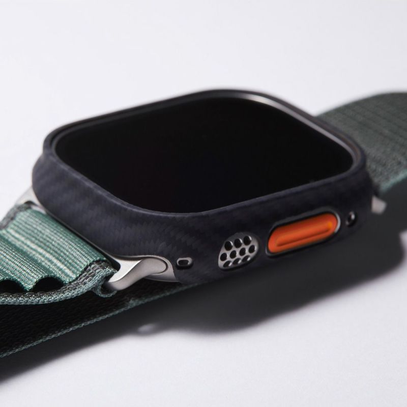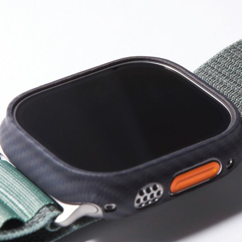 Ultraを保護する最適解として、ディーフは得意としているアラミド繊維を使ったDUROをデザインしました。Apple史上最強というサファイアガラス製のディスプレイをカバーするベゼルから、ボディの裏側に近い部分までApple