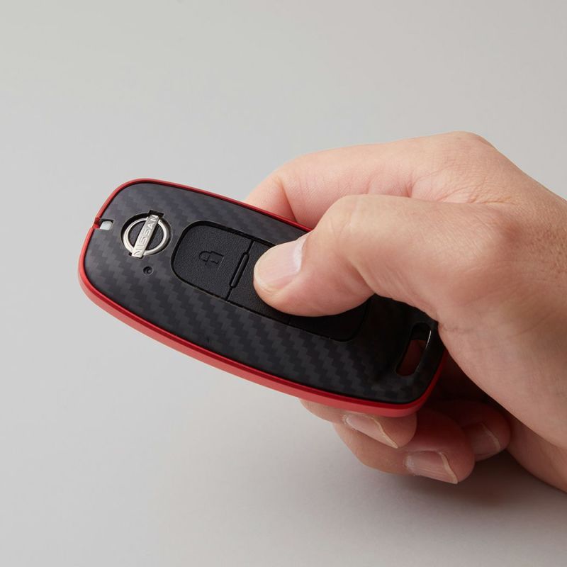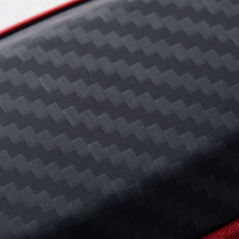 前面と背面はスマートキーの形状に合わせて精密に成形されたアラミド繊維製。外周はアルミニウムを削り出して成形したバンパーでしっかりとガードします。また、アラミド繊維はカーボン繊維と違い電波に干渉しませんので、スマートキーを安心して使用できます。