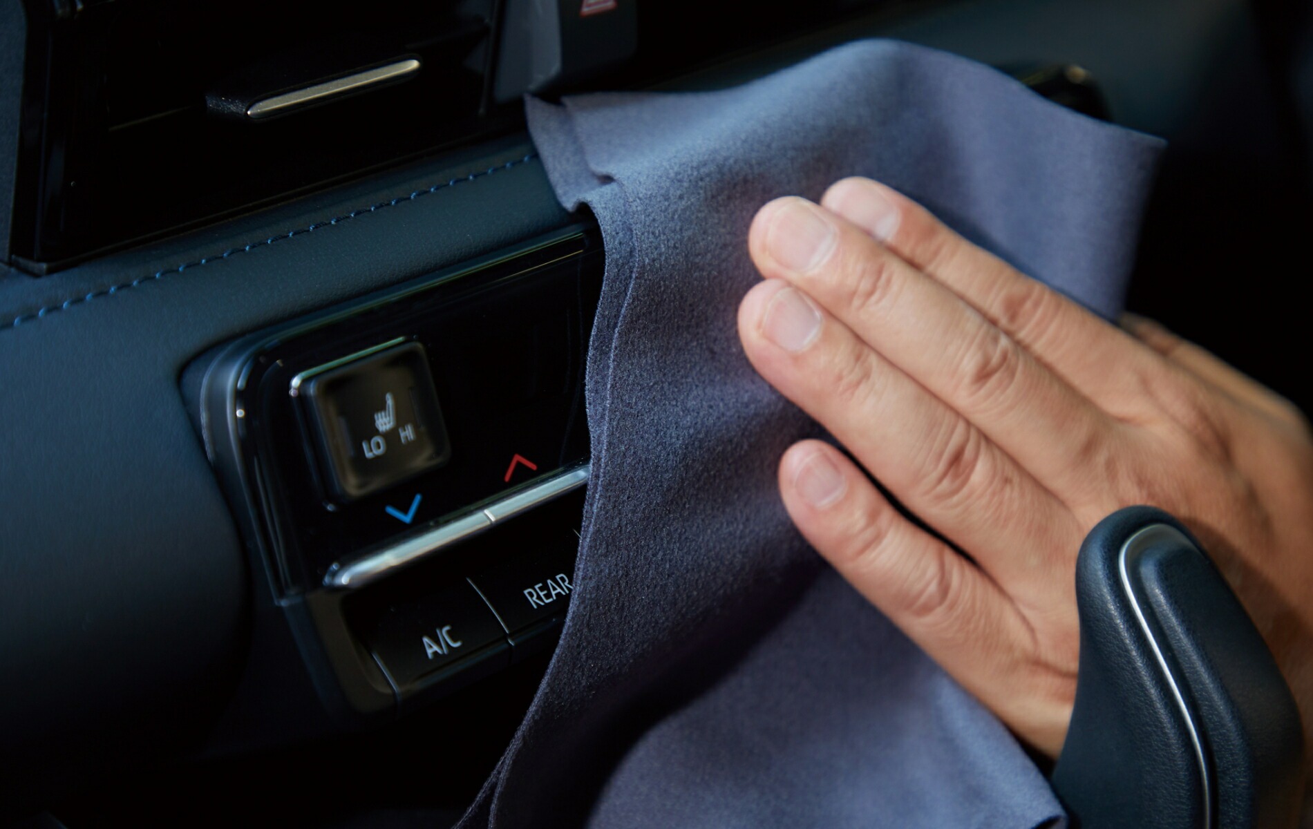 縦30×横20cmの絶妙なサイズは手にしっくりフィットし、アクリル鏡面仕上げのメーターをはじめ、タッチパネル、バックミラー、フロントガラス、ダッシュボード、ハンドルなど車内のあらゆる場所をくまなくスムーズに拭き上げることができます。