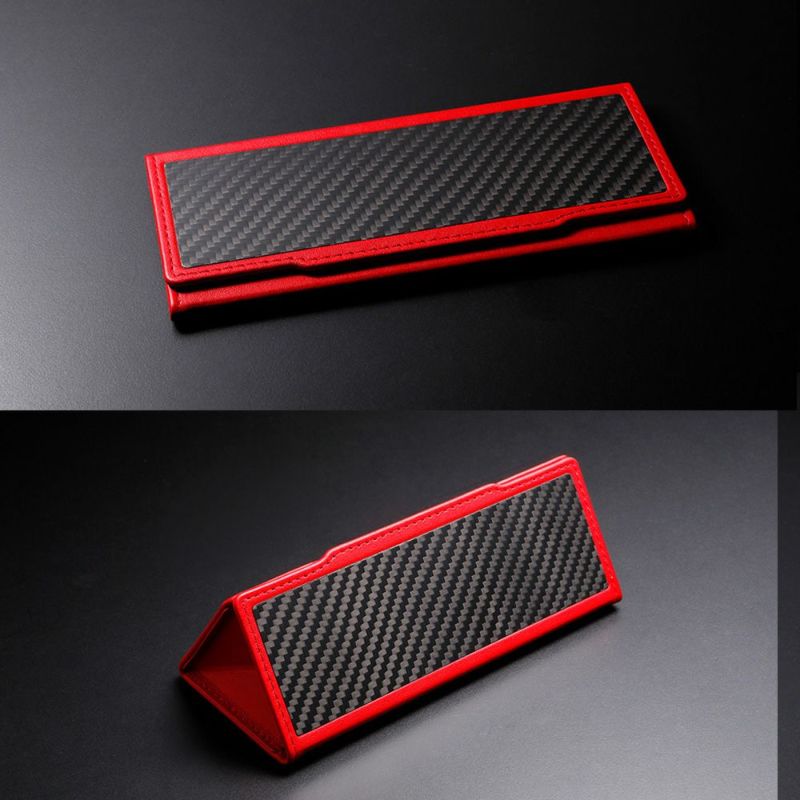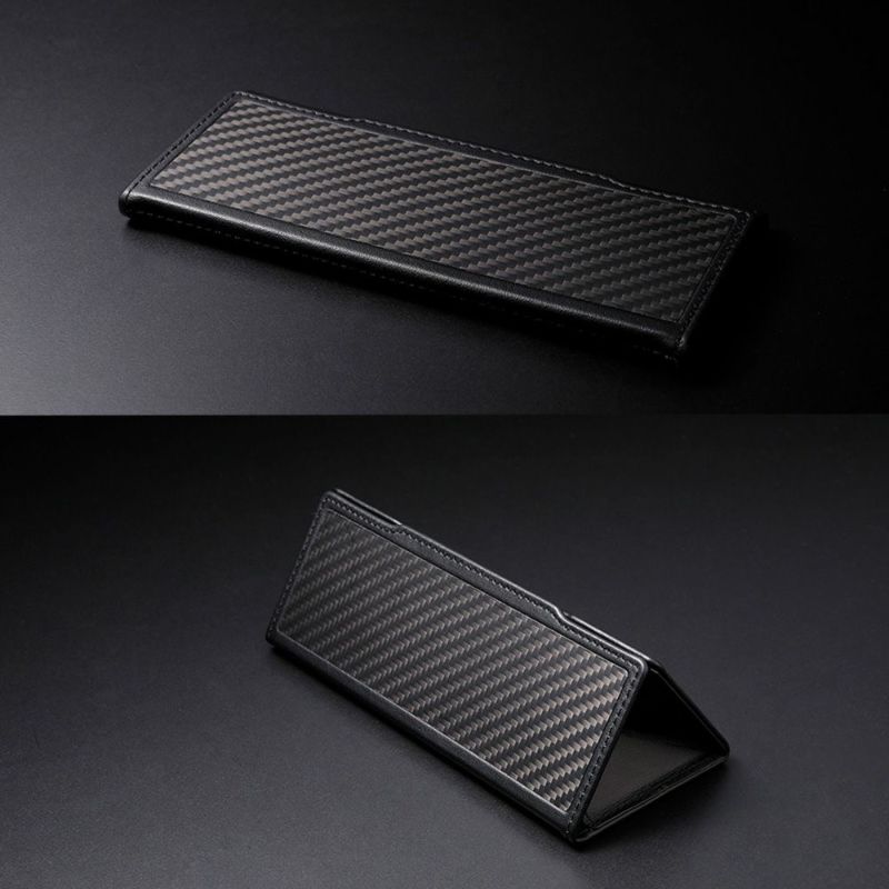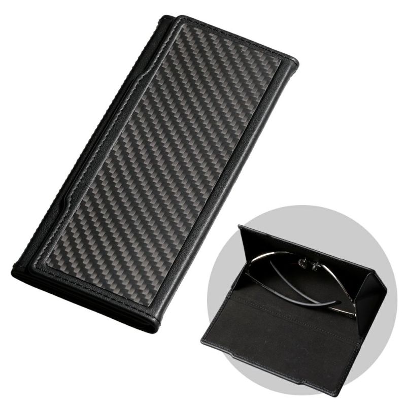 折りたたみ時のサイズは幅167×奥行69×厚み9mmなので、カバンやスーツの内ポケットにさっとすっきり収まります。展開時は最大約155×52mmのメガネまで収納可能。一般的なメガネ・サングラスであれば収納可能です(※2)。ケースの内側には、上質なマイクロファイバーを全面に貼り付けており、大事なメガネ、サングラスをやさしく保護します。カラーはブラックとレッドの2色です。