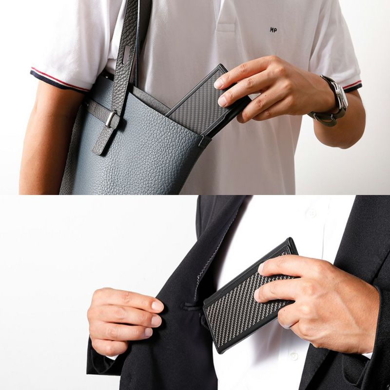 ON/OFFを華麗に使い分ける 最上質のナッパレザーにドライカーボンプレートを装飾