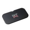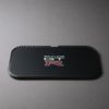 カーボンファイバーの織目を立体的な型押しで再現したリアルな触感・質感のPUレザーを表皮に、中央にはGT-Rのエンブレムを美しくプリントしています。充電器の形状は角が丸くて薄いトレー状。裏面は滑りにくい素材なので安定して設置できます。