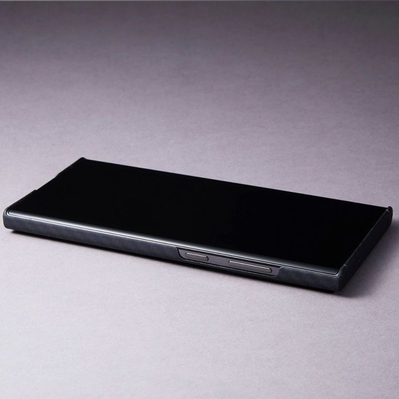 表面は複数のコーティング処理が施されており、汚れを残しにくい手触りの良い仕上げです。透けて見えるカーボンファイバーを思わせる美しい織目と共に上質なケースです。4G、5Gを含むデータ通信、通話、ワイヤレス充電、NFC通信、モバイルSuicaなど使用上の影響はありません。