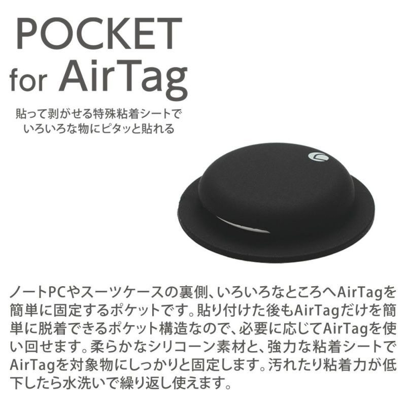 AirTagをPCやスーツケースの内部など固定しにくい部分にも取り付けられるケースです。ケースはポケット構造なので必要に応じて脱着ができます。内部にはAirTagの形状にあわせた溝があり、容易に飛び出さないようになっています。