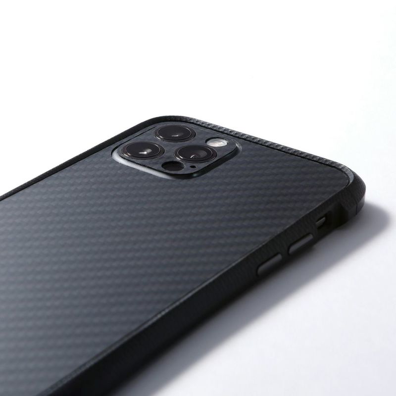 背面全体を保護するアラミド繊維(デュポン製ケブラー(R))を使用したプレートを付属しています。好みに合わせて背面に貼ることで、背面をよりハードなイメージにするだけでなく、擦り傷などからiPhoneの背面ガラスを保護します。NFC、ワイヤレスチャージにも影響しません。