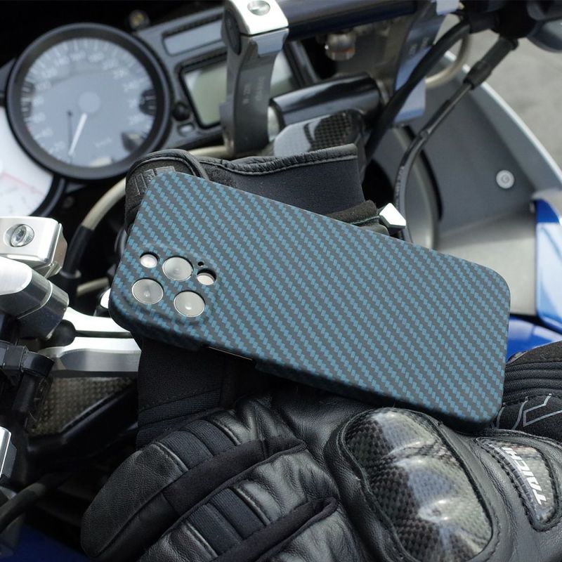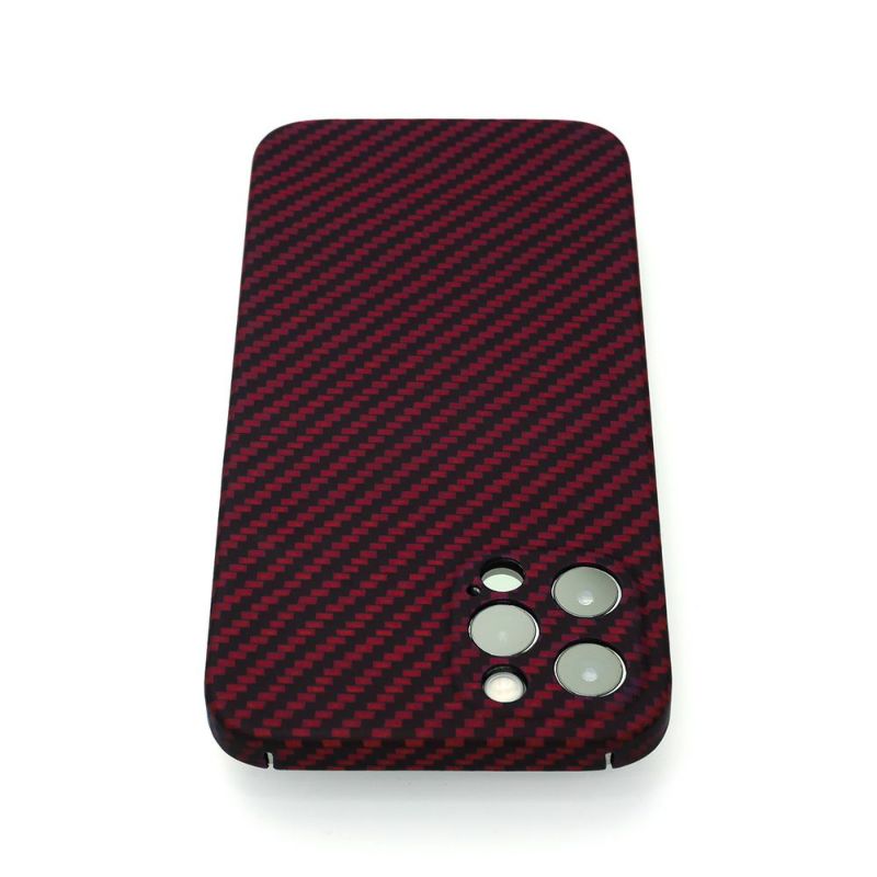 ディーフではアラミド繊維の取扱いに長けたパートナーと共に、理想のケースを求めて追求し続けてきました。その結果、素材の特性を十分に活かしたケースの製品化に成功しました。成形が難しい広い面積ですが、PC材などのフレームを一切使わずに全てをアラミド繊維だけで成形されているのも特徴です。ダメージの多いカメラ周りも全て囲っていますので、安心してお使い頂けます。
