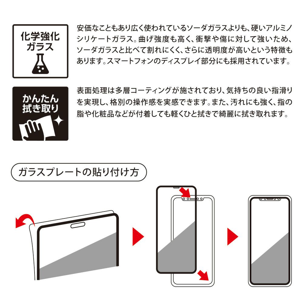 表面処理は多層コーティングが施されており、気持ちの良い指滑りを実現しました。格別の操作感を実感できます。また、汚れにも強く、指の脂や化粧品などが付着しても軽くひと拭きで綺麗に拭き取れます。万が一割れても、破片が飛散したり指に刺さることのないよう、特殊なフィルムで飛散防止処理が施されています。