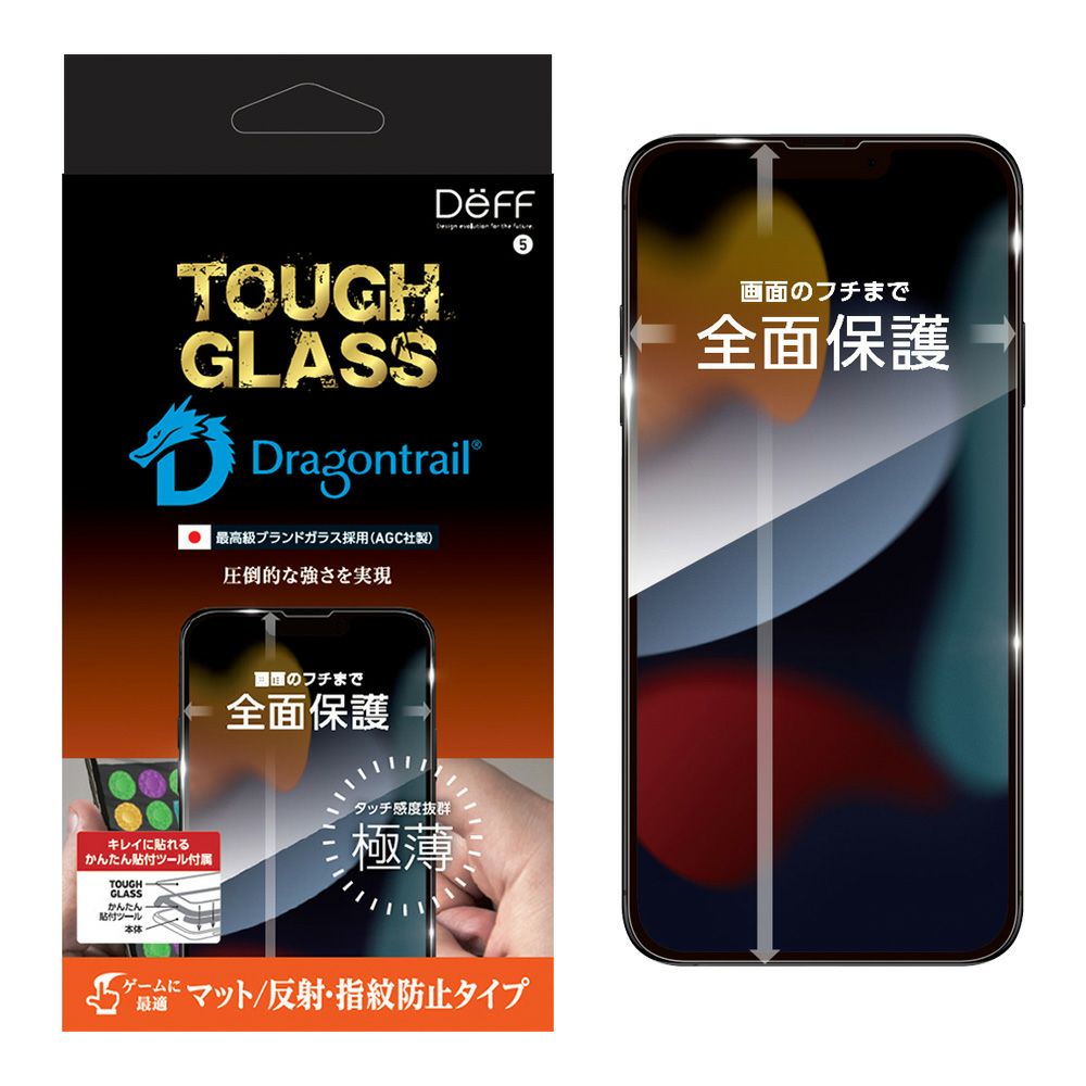 他の画像を見る iPhone13 / 13 mini / 13 Pro / 13 Pro Max 用 全画面保護 AGC DragonTrail 割れ難い 通常の6倍の強度 タフガラス マット メール便可 TOUGH GLASS for iPhone 13 Series (マット・指紋防止) 店内全品 ポイント10倍! 通常販売価格 ¥ 1,879 (税込) ¥ 1,879 税込 在庫切れ お気に入りに登録する