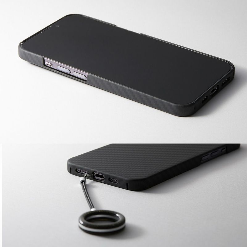 同質量の鋼鉄よりも5倍強く、ガラス繊維の半分の軽さという「アラミド繊維」。その中でも世界トップブランドの米国デュポン社製 ケブラー(R)を贅沢に使った特別なケースです。iPhoneのディテイルとほぼ同じ形状を踏襲し、装着しても本体がケース太りしません。装着していることすら忘れる約0.6mmの薄さとiPhone 13で約11gという軽さを誇ります。