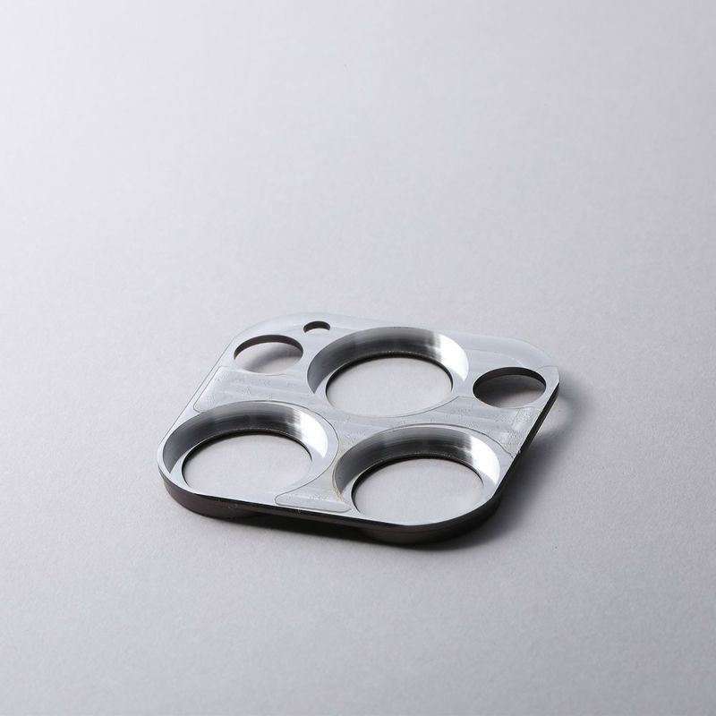 本体はひとつひとつ削り出したアルミニウム合金製。強靱なボディはiPhoneの精密なカメラユニットを外部の衝撃から守ります。ガラス部分はAGC製ガラスを高精度にはめ込みました。カバーガラスとレンズの隙間は0.1mm以下に抑え、撮影時の光学的な影響を最小限度に留めるよう調整しています。
