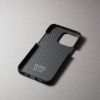 表面には複数のコーティング処理が施されており、防汚処理で汚れが付きにくく付いても簡単に拭き取れます。カーボンファイバーを思わせる美しい織目が高級感を感じさせます。4G, 5Gを含む全てのデータ通信、通話、ワイヤレス充電、Apple Pay、モバイルSuicaなどへの影響はありません。