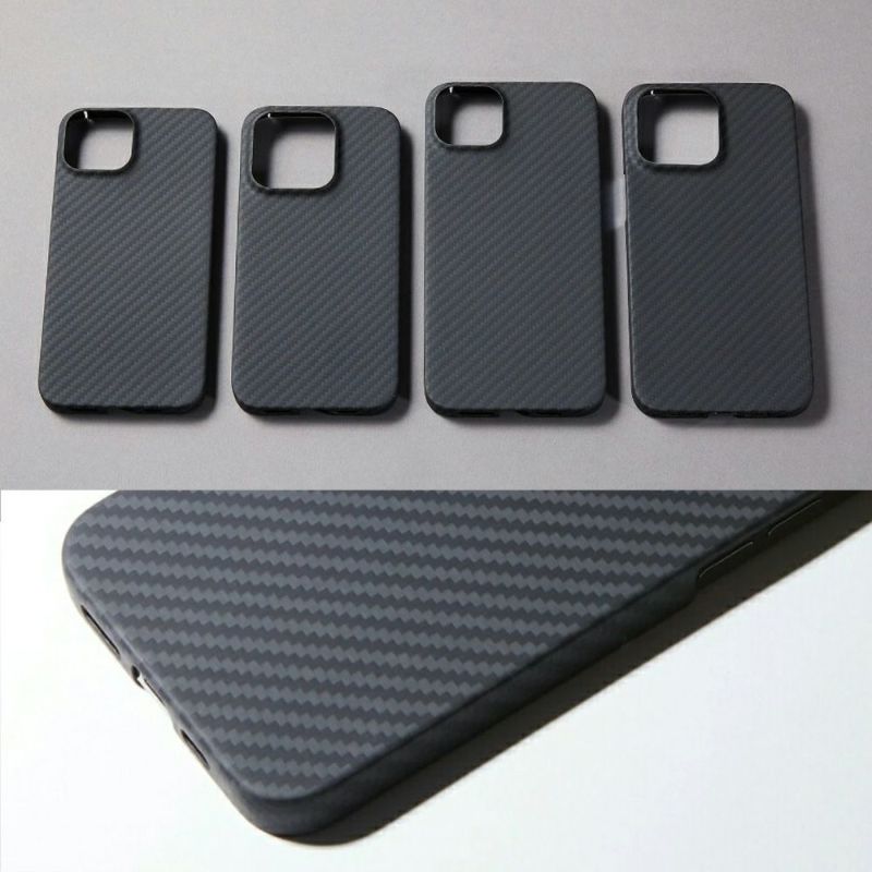 アラミドの原反で厚さ0.3mmの生地を2枚合わせてから丁寧に成形されたケースは、ドライカーボンファイバーとほぼ同じ工法で製造されています。全周囲を可能な限り保護するカットデザインでiPhoneをしっかりとガードします。