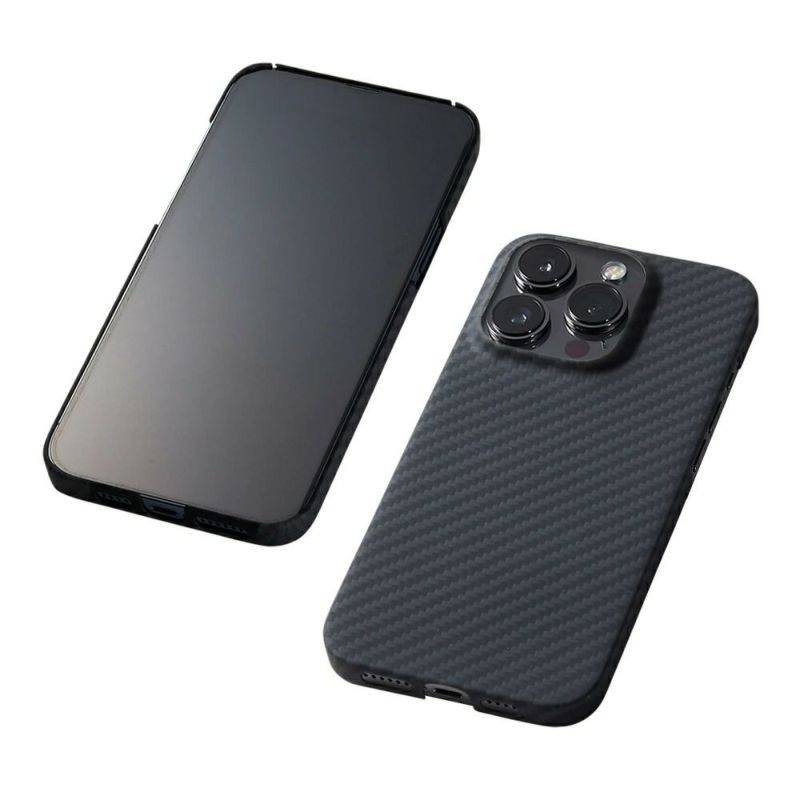 装着感すら忘れる約0.65mmの超薄型でありながら、すぐれた耐衝撃性能を誇るアラミド繊維「ケブラー(R)」を主材料とした超軽量・薄型ケース