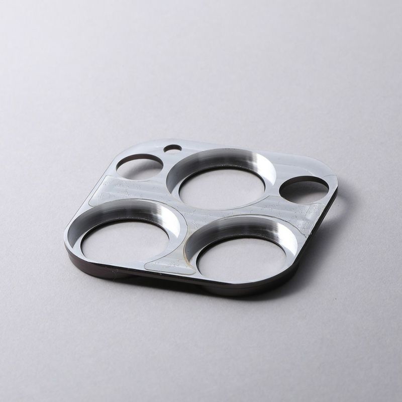 本体はひとつひとつ削り出したアルミニウム合金製。強靱なボディはiPhoneの精密なカメラユニットを外部の衝撃から守ります。ガラス部分はAGC製ガラスを高精度にはめ込みました。カバーガラスとレンズの隙間は0.1mm以下に抑え、撮影時の光学的な影響を最小限度に留めるよう調整しています。