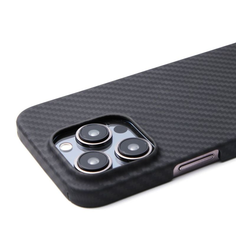 アラミドの原材料は厚さ約0.3mm。その生地を2枚合わせてから丁寧に成形されたケースは、ドライカーボンファイバーとほぼ同じ工法で製造されています。全モデルに採用されたUSB Type-Cポートはより汎用性が高まる様々なコネクターに対応させるため開口サイズを増やしています。またProモデルに採用されたアクションボタンについても操作性を考慮したカットデザインになっています。