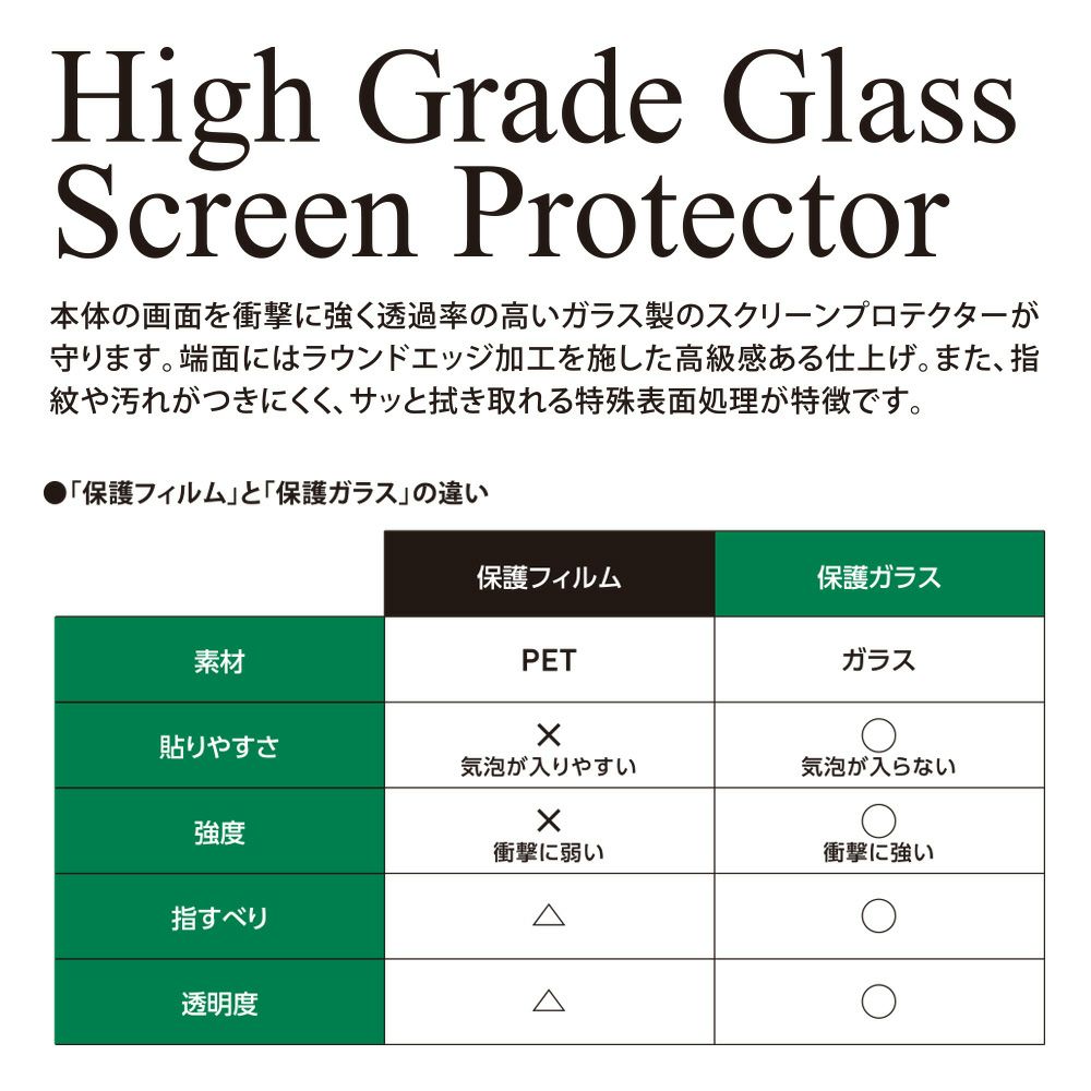「High Grade Glass Screen Protector」は、スタンダードタイプのスクリーンプロテクターです。厚さ0.25mmの化学強化ガラスでタッチ感度も抜群。確かな品質ながらお求め安い価格です。また特殊表面処理により、指紋や汚れがつきにくくサッと拭き取ることができます。 それぞれ3タイプをラインナップ。「透明タイプ」「UVカット+ブルーライトカット」今回より新たに「ナノマット」タイプを各グレード追加しました。これまでは難しかった特殊なマット処理を僅かに掛けることで、透明タイプの見やすさと、マットタイプの指滑りの良さ、そして写り込み防止(AR)の効果の全てをバランス良く盛り込んだ仕様です。
