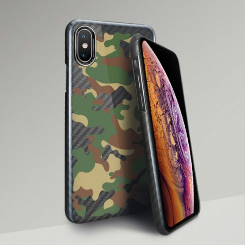 「monCarbone」は、デュポン社が誇る強化繊維「ケブラー?」を使ったiPhoneケースなどのシリーズ。ケブラー?は高強度、高耐熱性を誇る繊維で同じ重さの鋼鉄と比べて約5倍もの強度を誇り、飛行機や自転車などのボディや防弾チョッキにも採用されています。このケブラーを使ったケースは傷や衝撃からスマートフォンをしっかり保護してくれます。また、弾力性もあるので装着もiPhoneを軽く押し込むだけでOKです。カーボンファイバーは電波を遮ってしまうという素材の特性がありましたが、デュポン社の「ケブラー」はその問題をクリア。iPhoneを快適に使うことが可能。さらにケースを装着したままワイヤレス充電を行なうことも可能です。本商品は背面にカモフラージュ柄を施したスペシャルカラー仕様です。