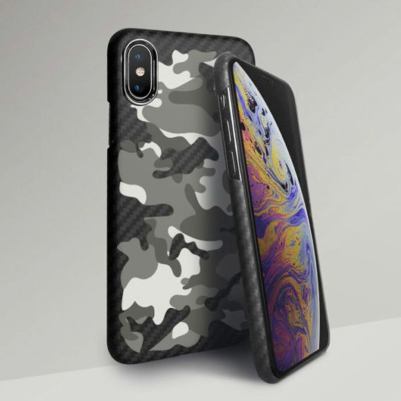 「monCarbone」は、デュポン社が誇る強化繊維「ケブラー?」を使ったiPhoneケースなどのシリーズ。ケブラー?は高強度、高耐熱性を誇る繊維で同じ重さの鋼鉄と比べて約5倍もの強度を誇り、飛行機や自転車などのボディや防弾チョッキにも採用されています。このケブラーを使ったケースは傷や衝撃からスマートフォンをしっかり保護してくれます。また、弾力性もあるので装着もiPhoneを軽く押し込むだけでOKです。カーボンファイバーは電波を遮ってしまうという素材の特性がありましたが、デュポン社の「ケブラー」はその問題をクリア。iPhoneを快適に使うことが可能。さらにケースを装着したままワイヤレス充電を行なうことも可能です。本商品は背面にカモフラージュ柄を施したスペシャルカラー仕様です。