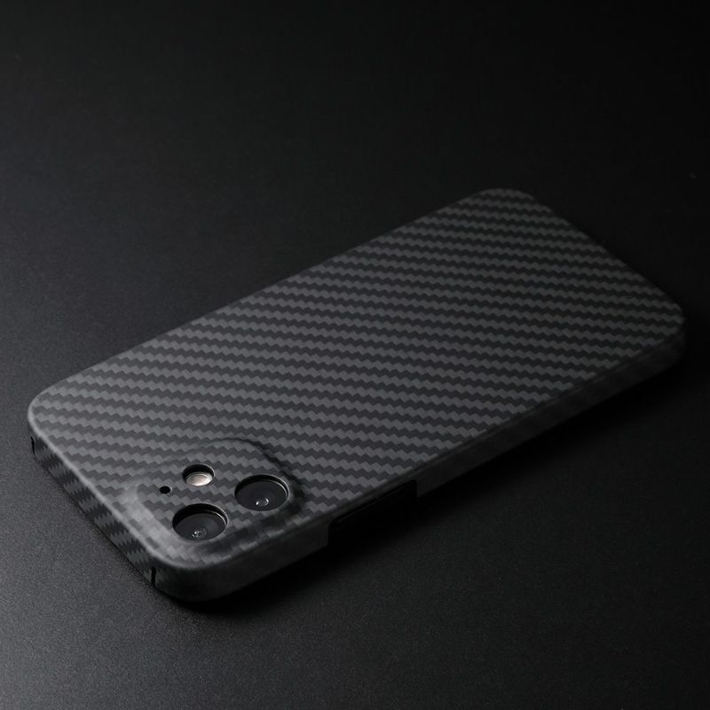 ディーフではアラミド繊維の取扱いに長けたパートナーと共に、理想のケースを求めて追求し続けてきました。その結果、素材の特性を十分に活かしたケースの製品化に成功しました。成形が難しい広い面積ですが、PC材などのフレームを一切使わずに全てをアラミド繊維だけで成形されているのも特徴です。ダメージの多いカメラ周りも全て囲っていますので、安心してお使い頂けます。