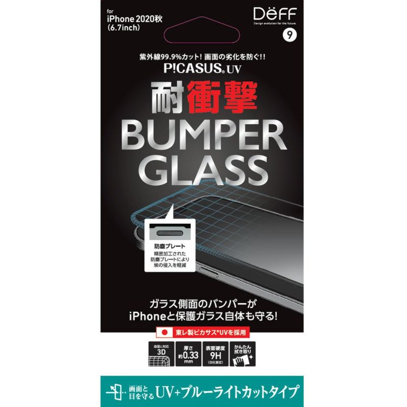 iPhone 12 Pro Max 用 ガラスフィルム「BUMPER GLASS」紫外線99.9%カット+ブルーライトカット