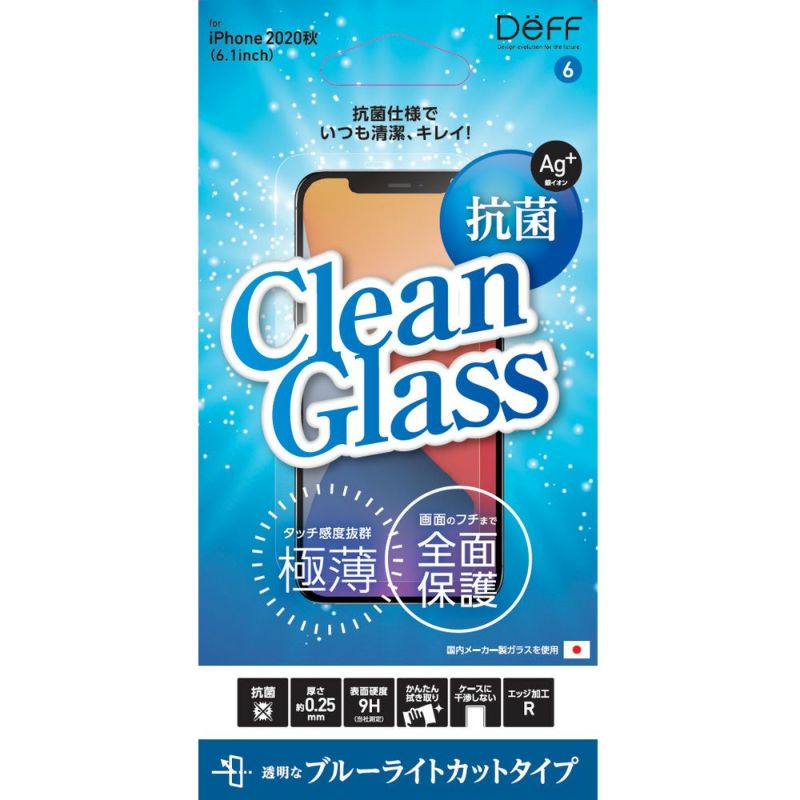 iPhone 12 / iPhone 12 Pro 用 抗菌ガラスフィルム「Clean Glass」指すべり抜群 ブルーライトカット 40%カット