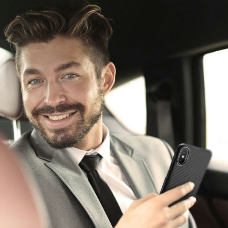 「monCarbone」は、デュポン社が誇る強化繊維「ケブラー」を使ったiPhoneケースなどのシリーズ。ケブラー?は高強度、高耐熱性を誇る繊維で同じ重さの鋼鉄と比べて約5倍もの強度を誇り、飛行機や自転車などのボディや防弾チョッキにも採用されています。このケブラーを使ったケースは傷や衝撃からスマートフォンをしっかり保護してくれます。また、弾力性もあるので装着もiPhoneを軽く押し込むだけでOKです。カーボンファイバーは電波を遮ってしまうという素材の特性がありましたが、デュポン社の「ケブラー」はその問題をクリア。iPhoneを快適に使うことが可能。さらにケースを装着したままワイヤレス充電を行なうことも可能です。