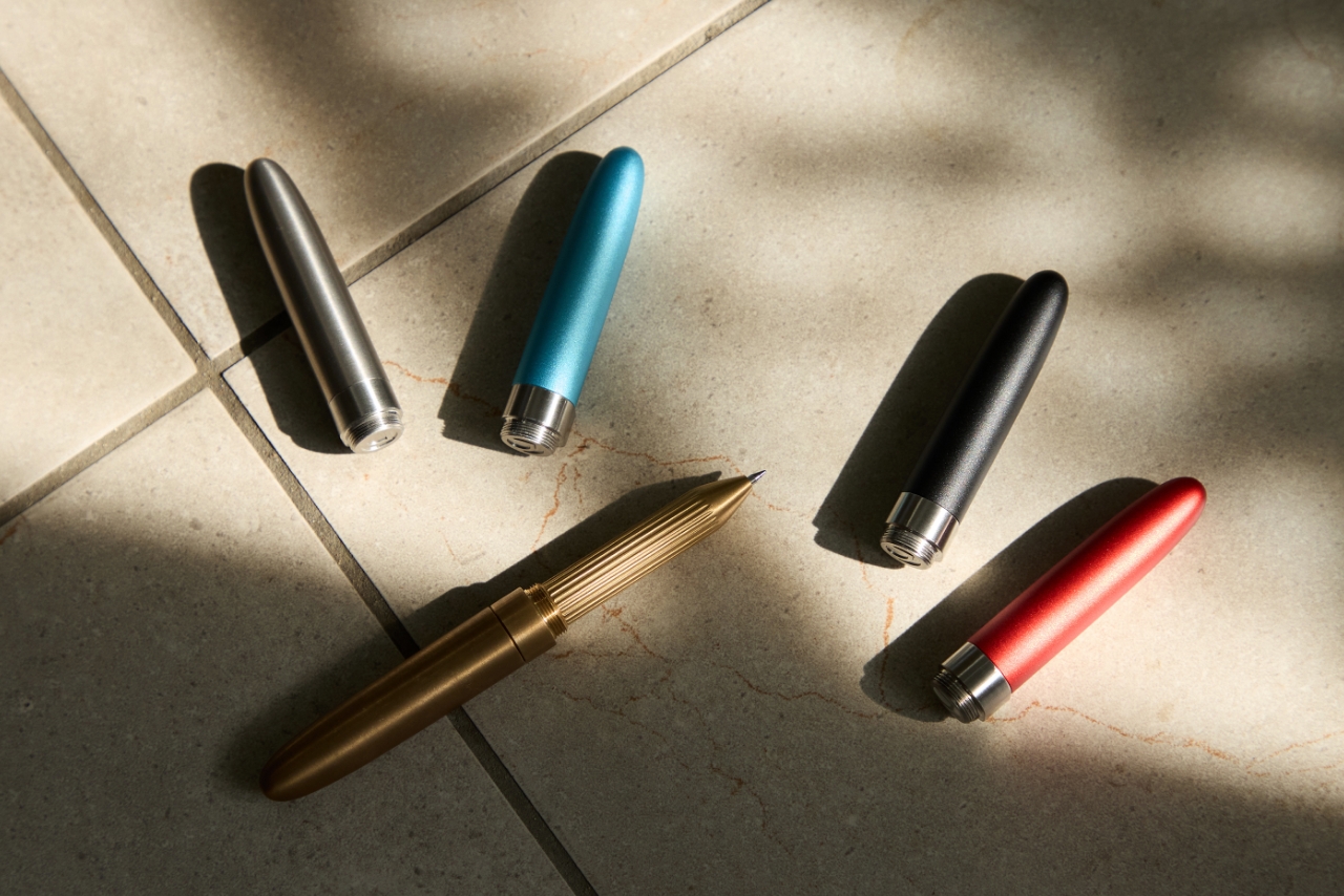 キャップがボディを兼ねる独自構造により、抜群の携帯性を実現。収納時はスタンド無しで自立し、デスク上のオブジェのような佇まいを見せます。