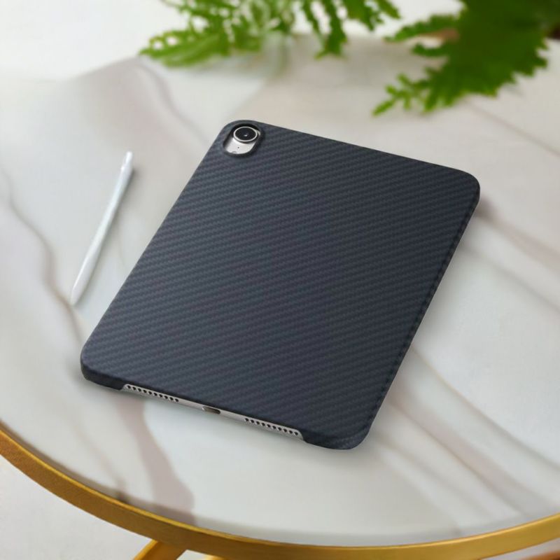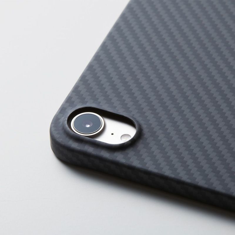 miniの最新モデルに対応したアラミド繊維のケースです。厚さは約0.8mm厚で重量は約30gという驚異的なスペックながら、同質量の鋼鉄よりも5倍強く、耐衝撃にも大変優れた特殊素材、世界トップブランドの米国デュポン社製
