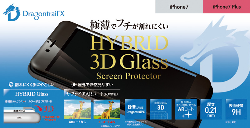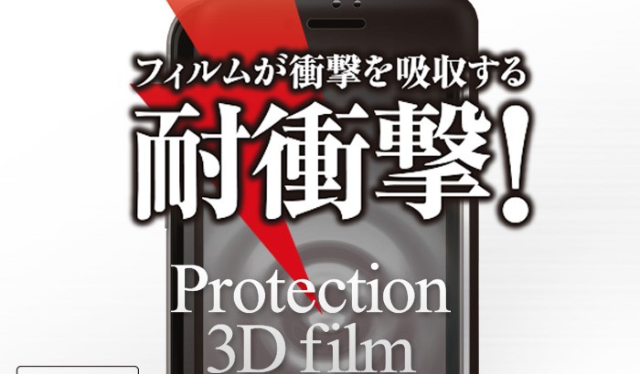 iPhone 7、iPhone 7 Plusの液晶ディスプレイにピッタリフィットした3D特殊加工の耐衝撃フィルムを発売。独自の素材構成で、画面を汚れや傷だけでなく、衝撃からもしっかり守る。