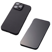 主素材に軽量で衝撃吸収性に優れたエラストマー樹脂(TPE)とガラスを組み合せ、アルミバンパー「CLEAVE」の三次元曲線を取り入れたiPhone 14 Pro用HYBRIDケース